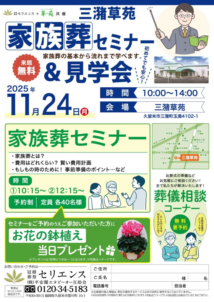11/24(月祝)開催|三潴草苑 家族葬セミナー&見学会[参加無料] 2025/10/26