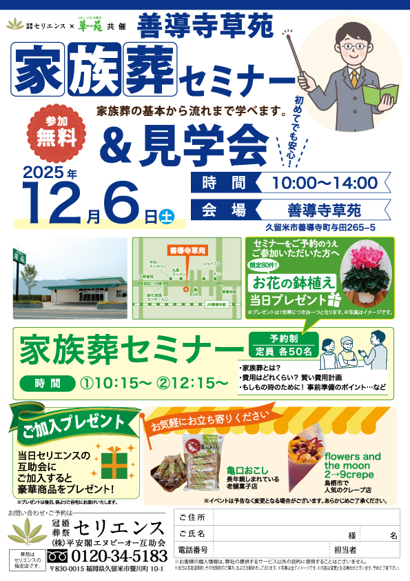 12/6(土)開催|善導寺草苑 家族葬セミナー&見学会[参加無料] 2025/11/09
