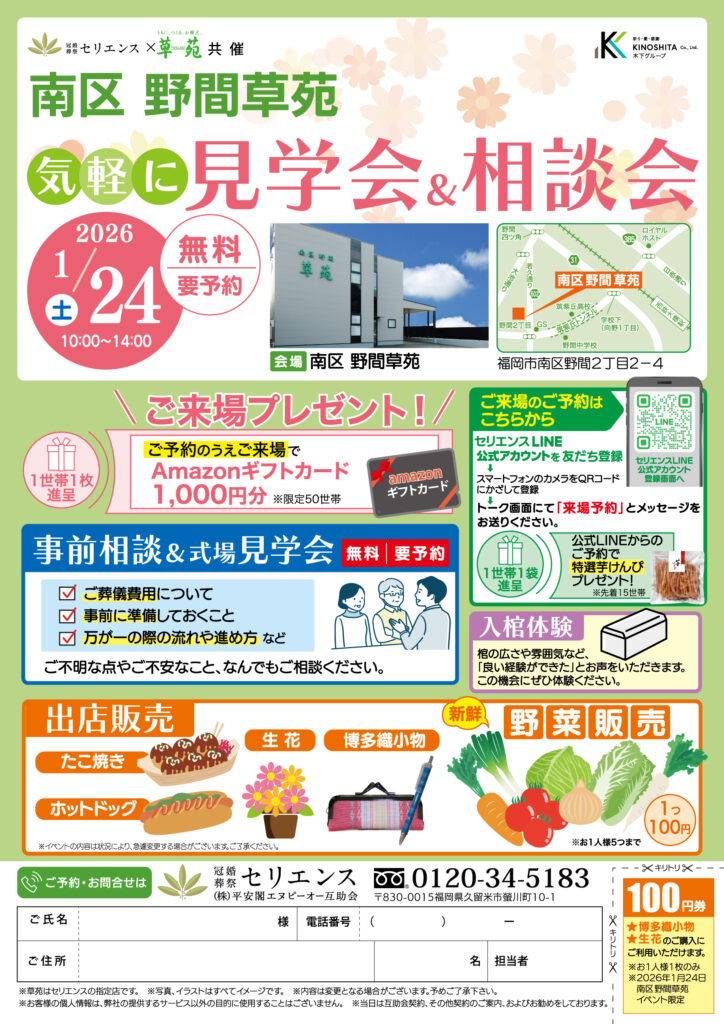 ■事前相談&式場見学会【無料|要予約】■入棺体験■出店販売 たこ焼き/ホットドッグ/生花/博多織小物