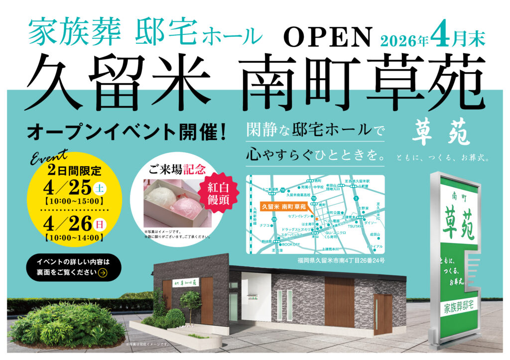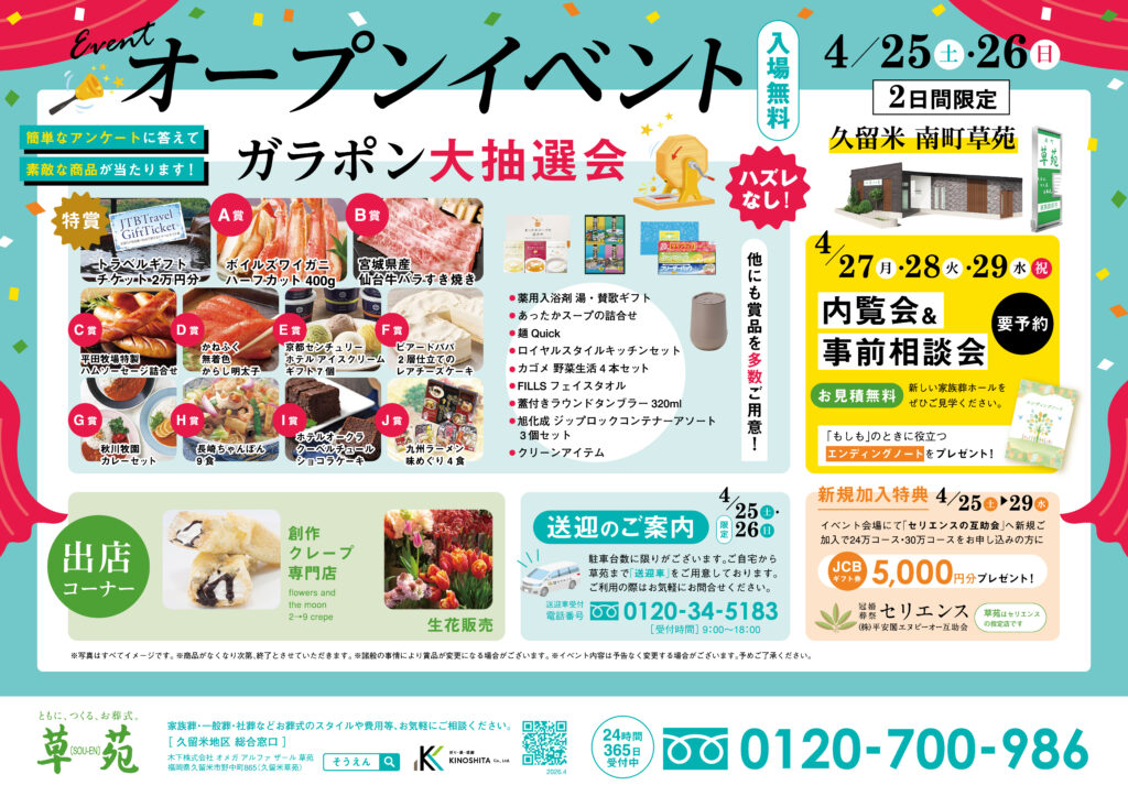 2026年4月久留米市 南町に「南町草苑」がグランドオープン!4月25日(土)・26日(日)は豪華景品が当たるガラポン大抽選会や季節の生花販売など、ご家族で楽しめるオープンイベントを開催!